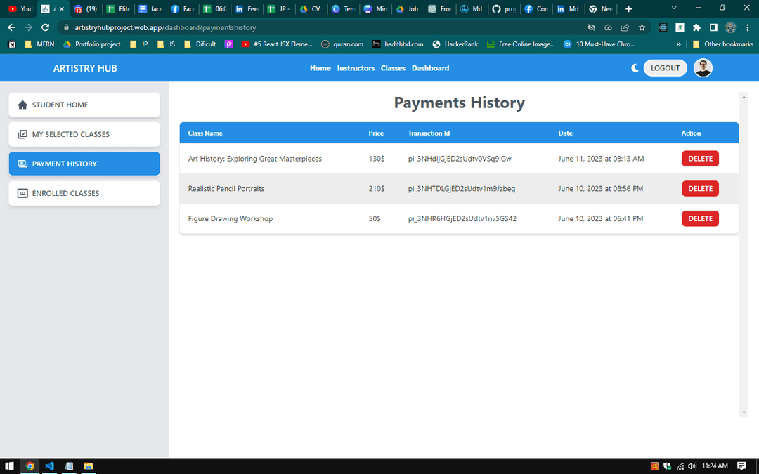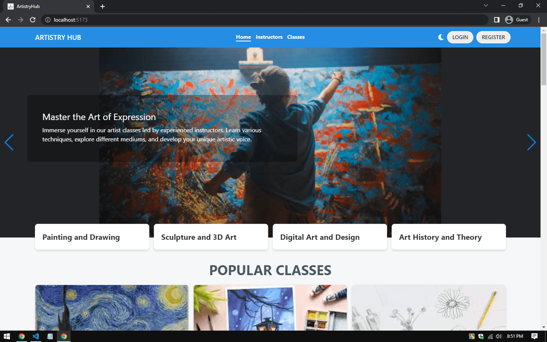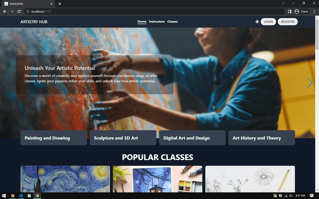 MERN Project: Artistry Hub is a web application that provides a platform for users to explore and enroll in various classes offered by instructors. The website offers a range of features for different user roles, including students, instructors, admins, and super admins. Users can access the live site here. . MERN Project: Artistry Hub is a web application that provides a platform for users to explore and enroll in various classes offered by instructors. The website offers a range of features for different user roles, including students, instructors, admins, and super admins. Users can access the live site here.